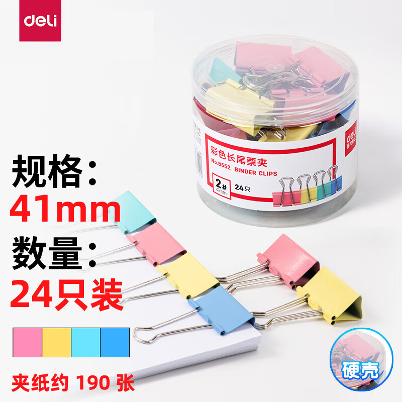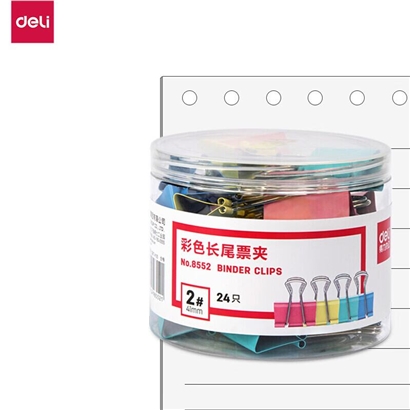 得力8552S-2#彩色长尾夹票夹 41mm 24只 |