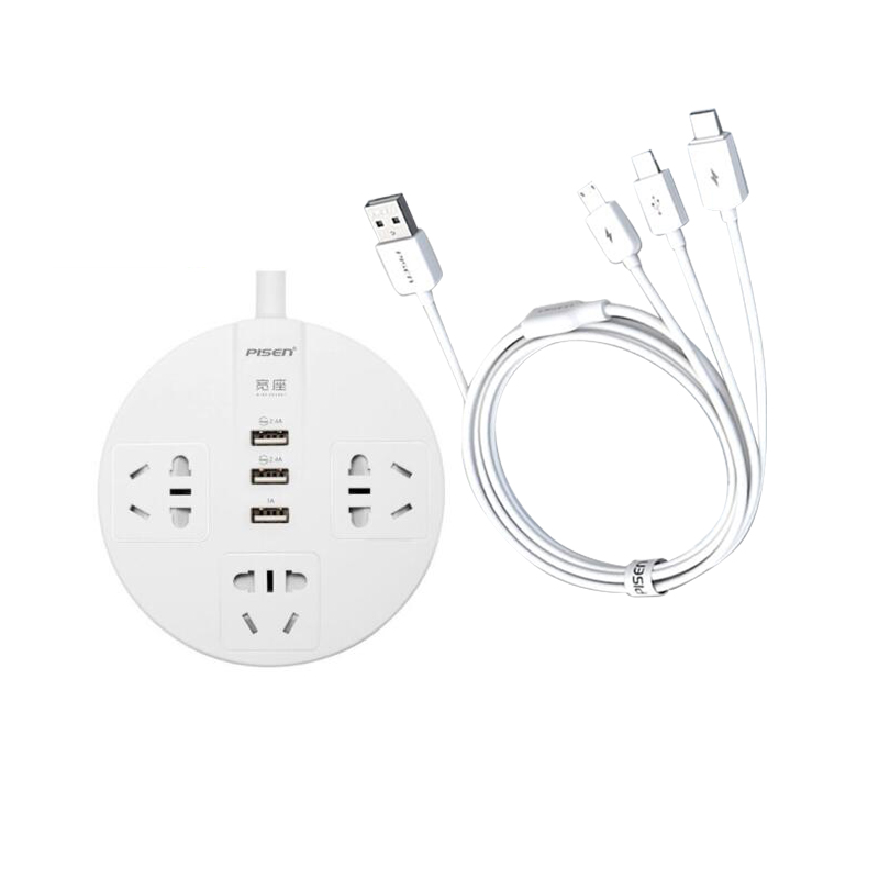 智能USB排插3合1数据线套装【ABS/白色】 |