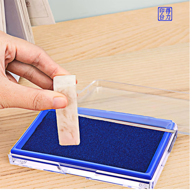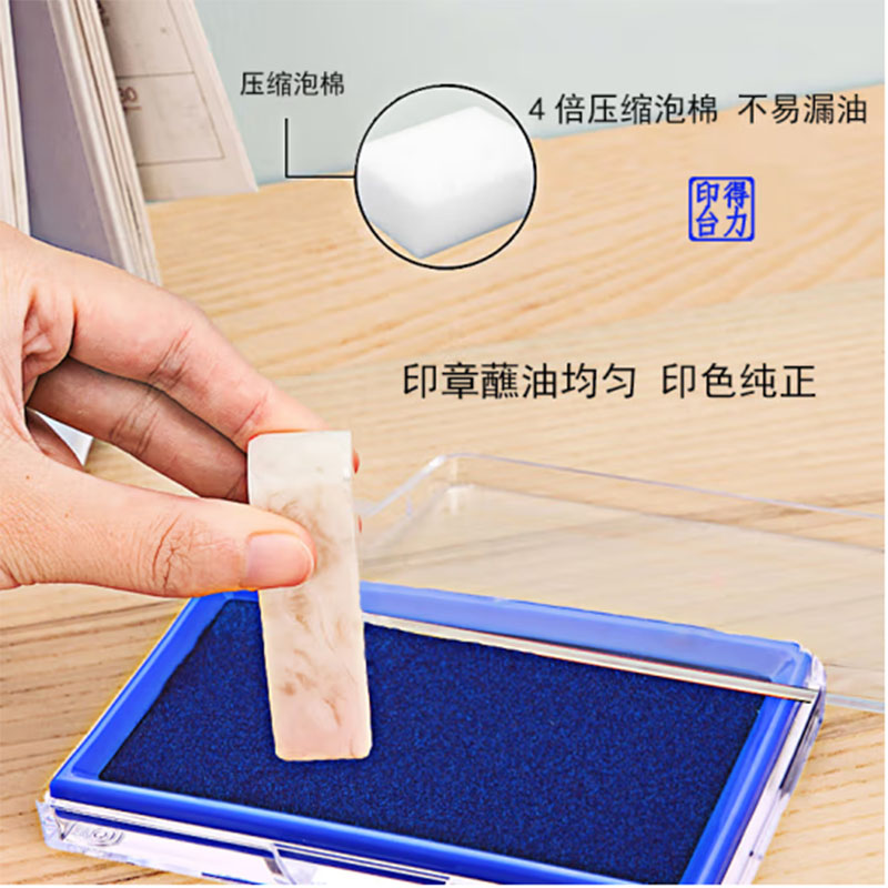 得力(deli)9864 蓝色137*88mm透明外壳方形快干印台印泥 |