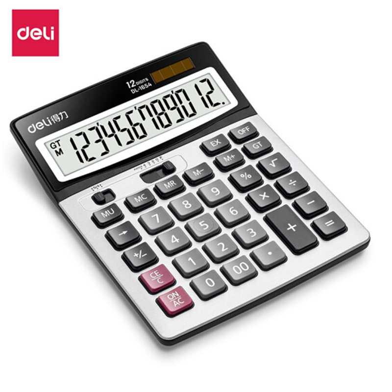 得力(deli)双电源宽屏办公桌面计算器 财务计算机 办公文具用品 银灰色1654 |