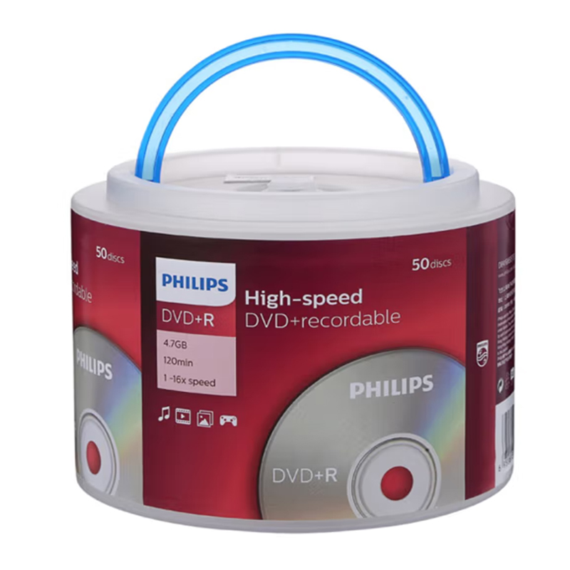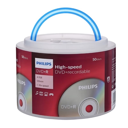 飞利浦(PHILIPS)DVD+R光盘/刻录盘 16速4.7G 桶装50片 |