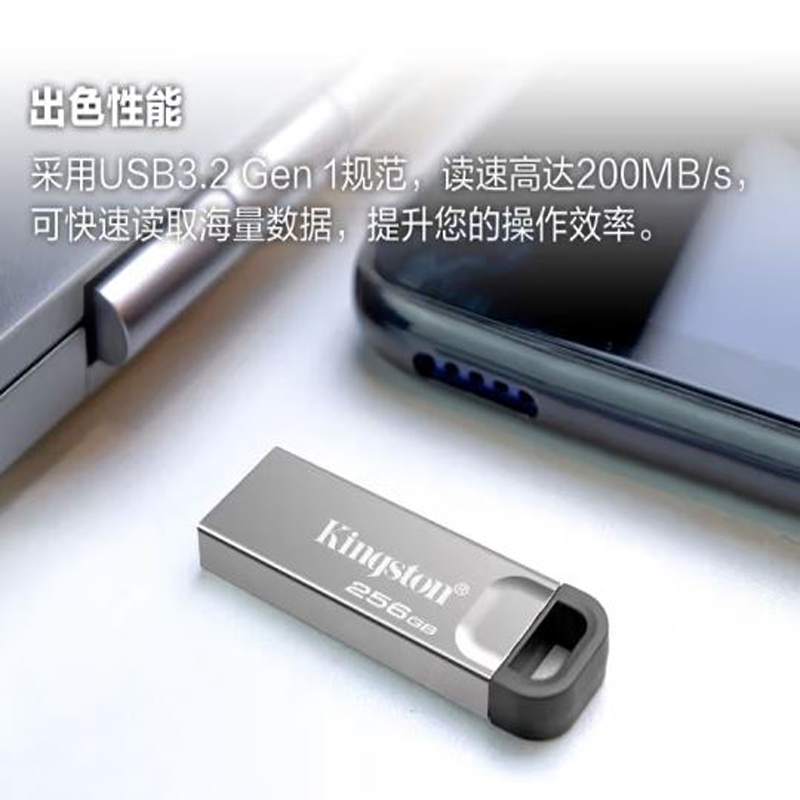 金士顿(Kingston)256GB USB 3.2 Gen 1 U盘 DTKN 金属外壳 读速200MB/s |
