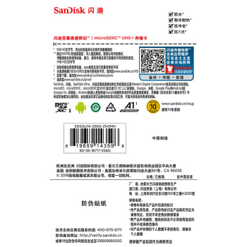 闪迪(SanDisk)256GB TF(MicroSD)存储卡 U1 C10 A1 至尊高速移动版内存卡 读速100MB/s 广泛兼容 |
