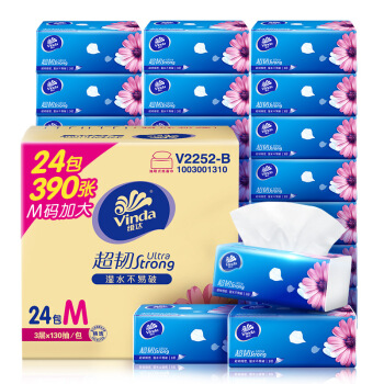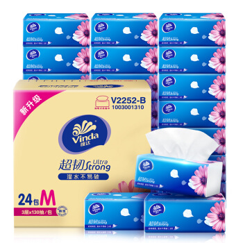 维达(Vinda)抽纸 超韧3层130抽纸巾*24包(认准真M码) 整箱销售 可湿水面巾纸面巾纸 |