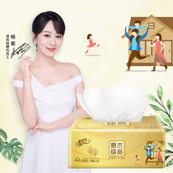 清风(APP)抽纸 原木纯品金装系列 3层120抽软抽纸巾*10包(母婴可用 柔软厚实) |