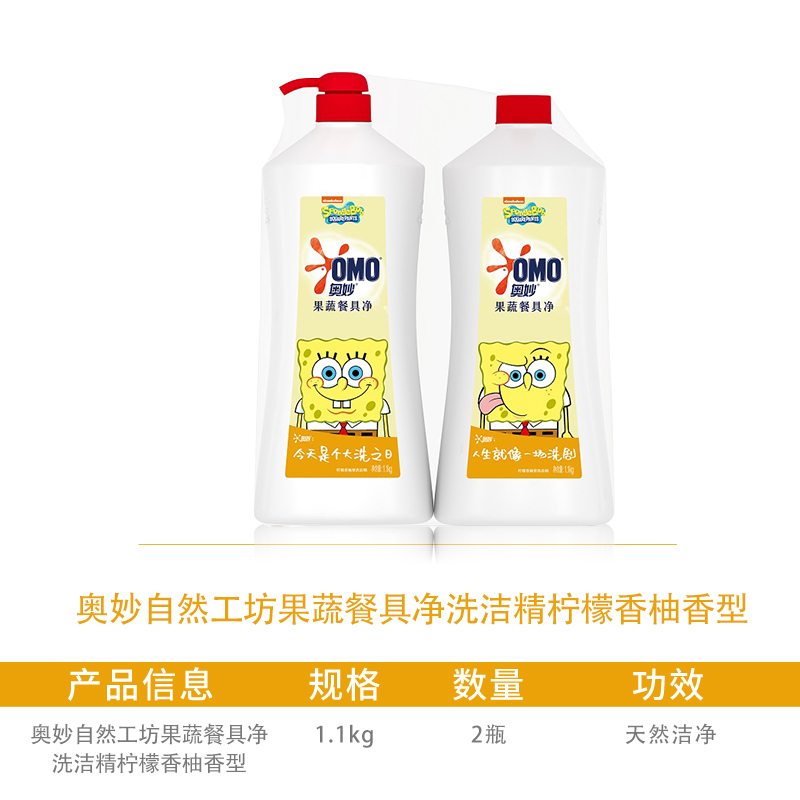 自然工坊果蔬餐具净洗洁精柠檬香柚香型2*1.1KG |