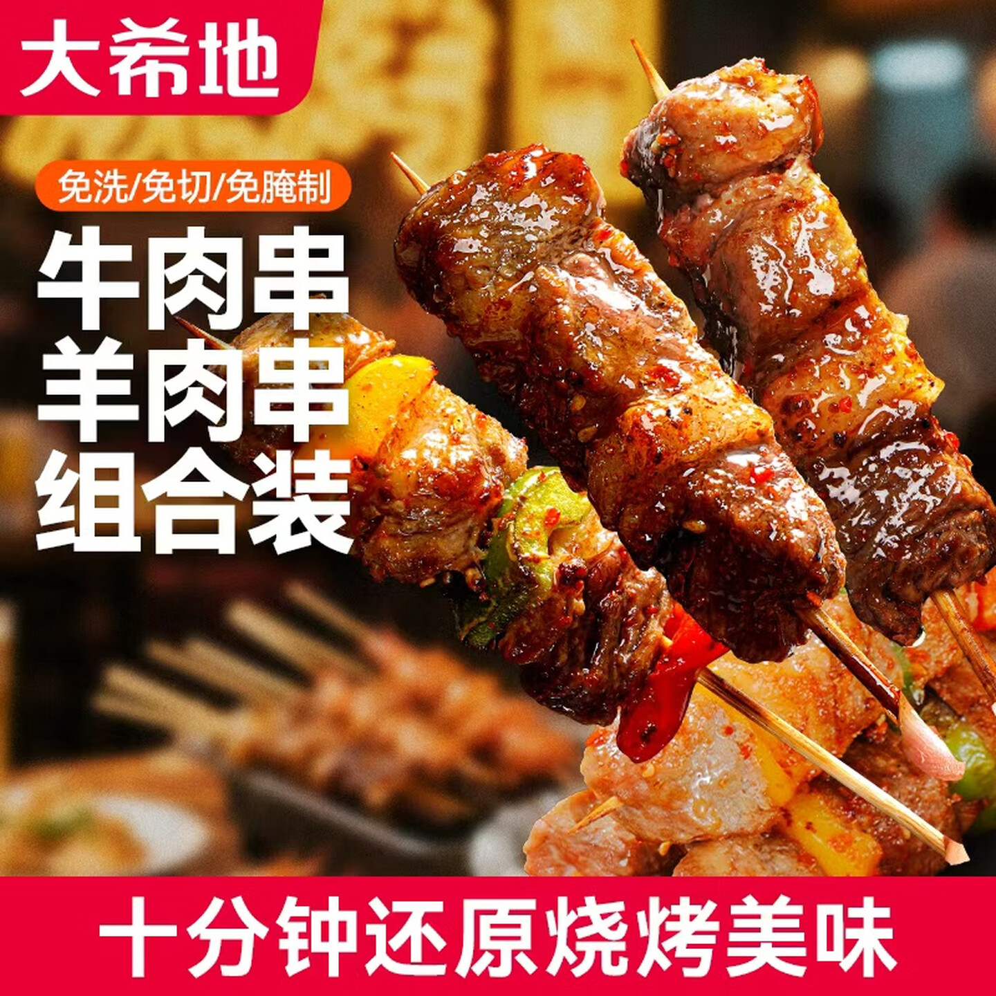 大希地安格斯牛肉串240g*3袋+羊肉串240g*2袋 腌制入味烧烤露营食材 |