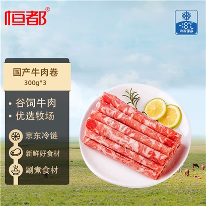 恒都 国产精选牛肉卷 300g*3 冷冻 国产黄牛 谷饲牛肉 |
