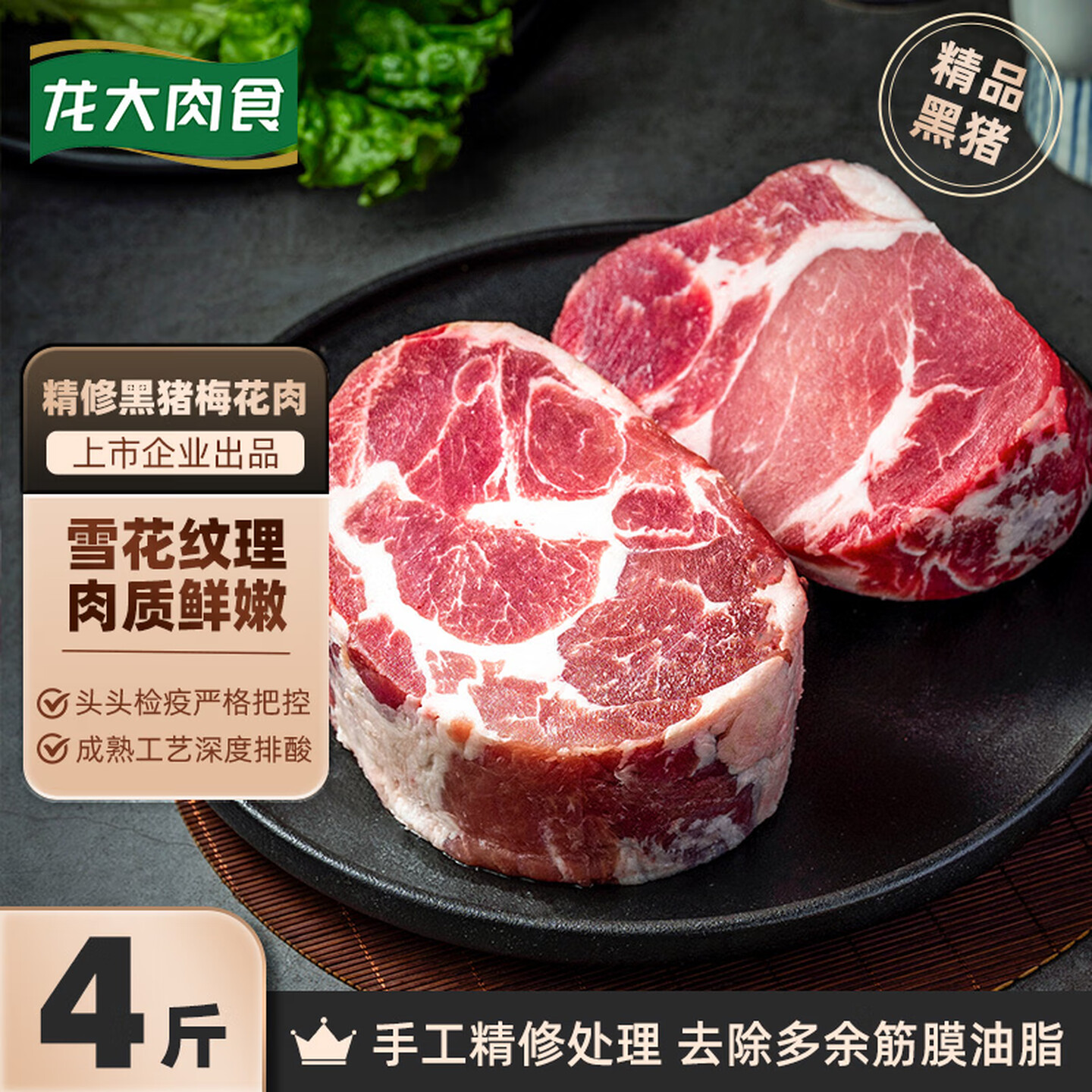 龙大肉食 黑猪梅花肉块净重4斤 猪肉生鲜梅花肉 冷冻黑猪肉块 |