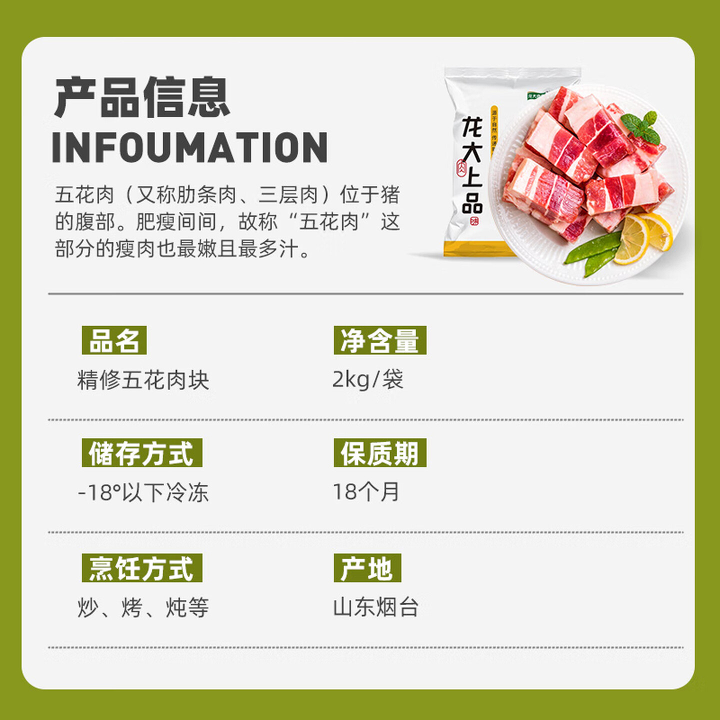 龙大肉食 猪五花肉块净重4斤 冷冻带皮五花肉猪五花烤肉 出口日本级 |