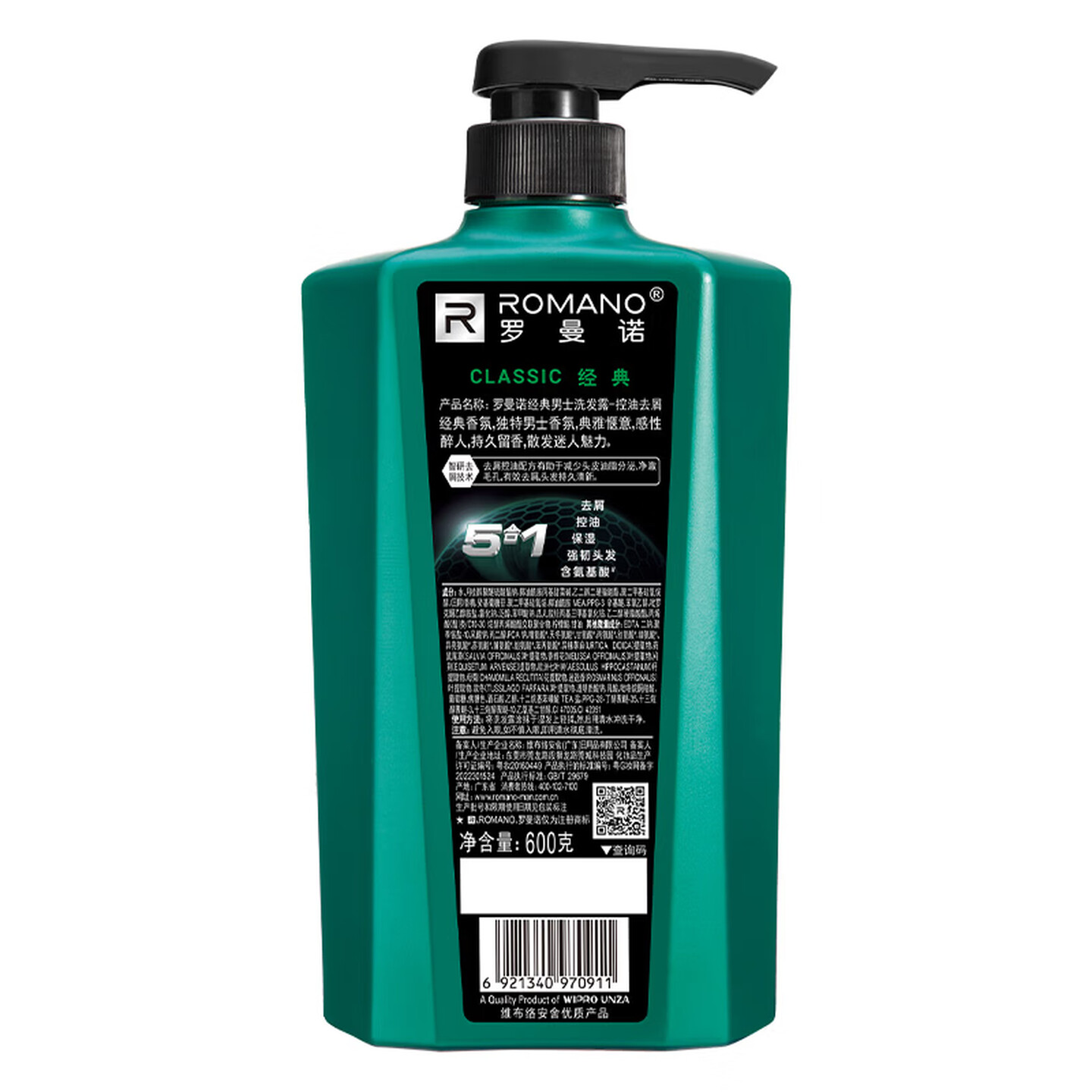 罗曼诺(ROMANO)男士洗发水经典香型600ml |