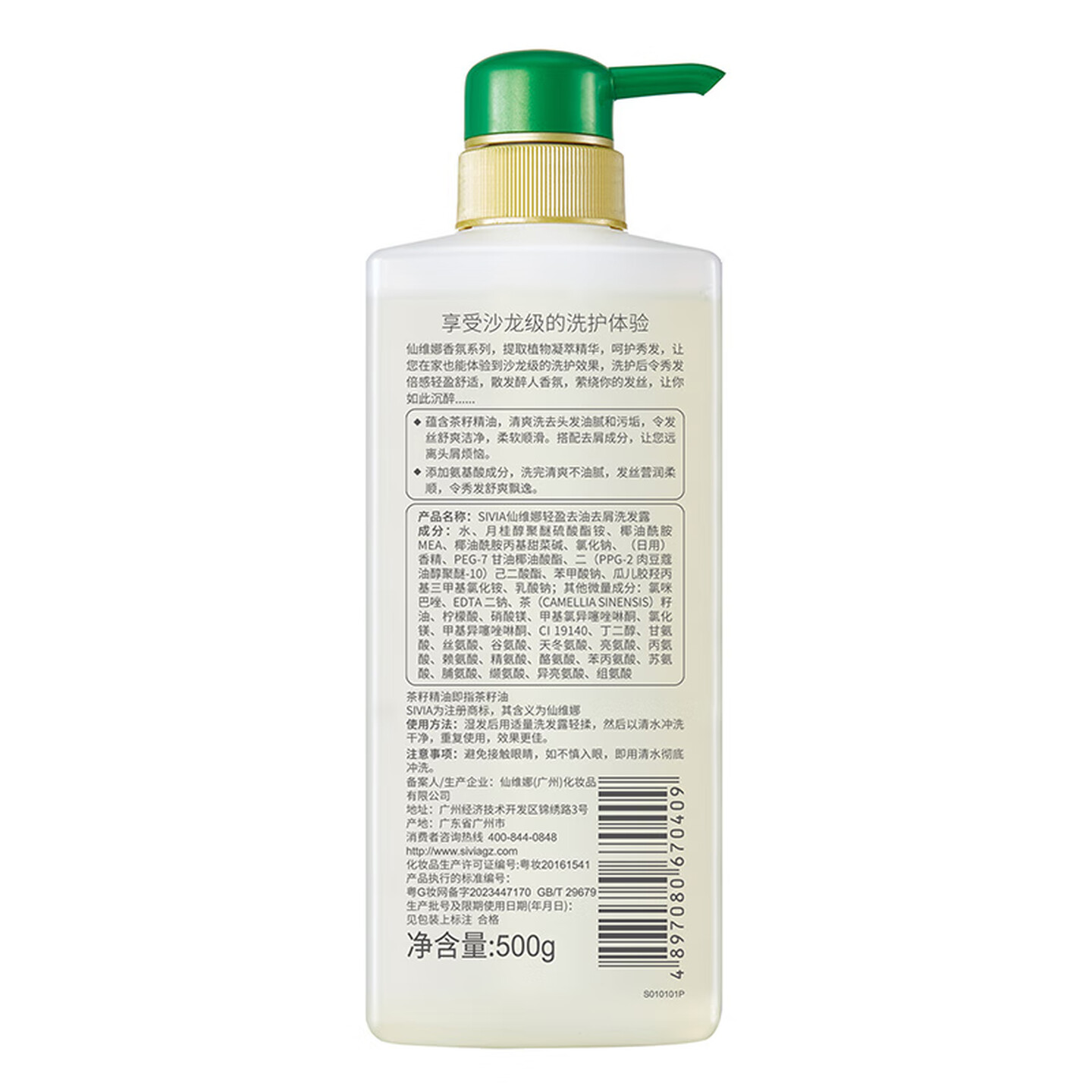 仙维娜氨基酸洗发水茶籽去油去屑500ml |
