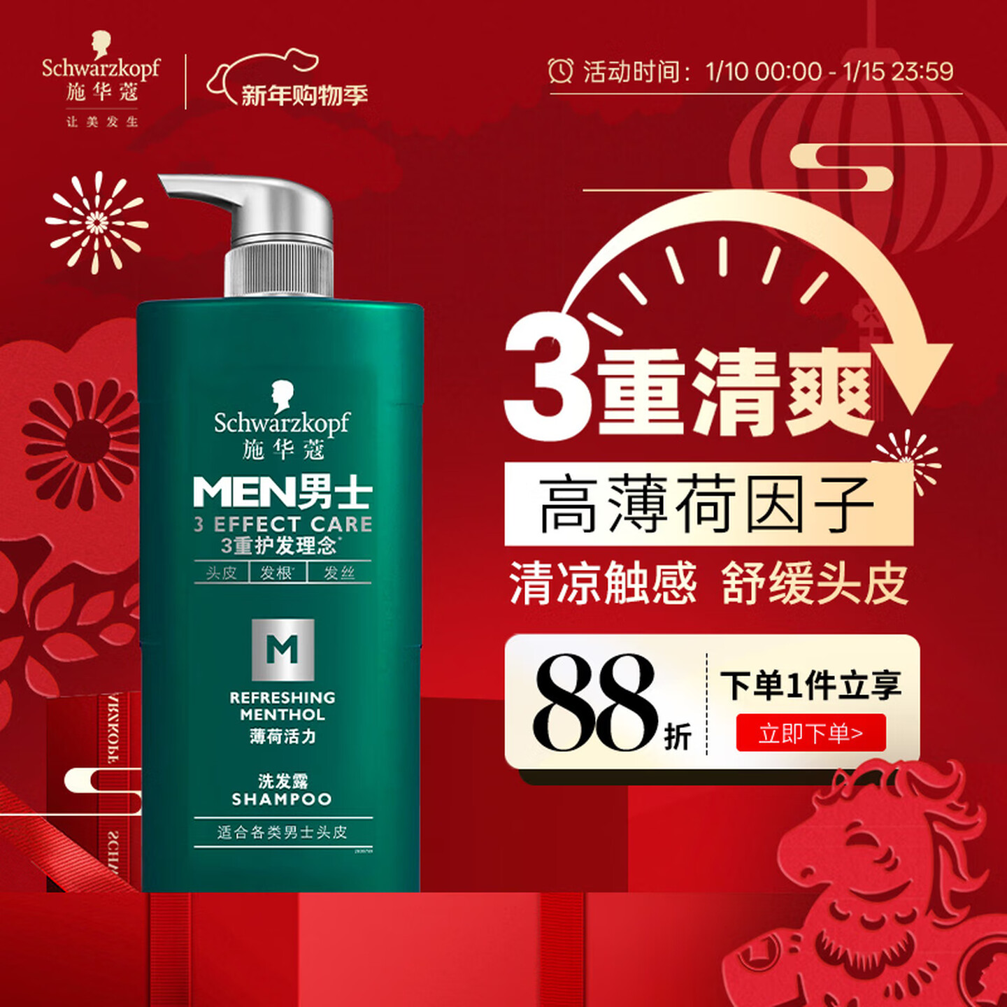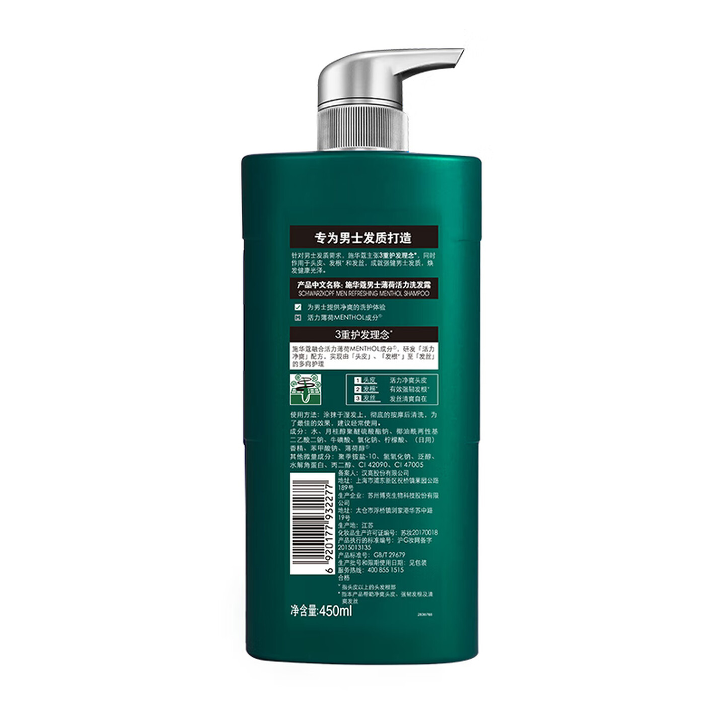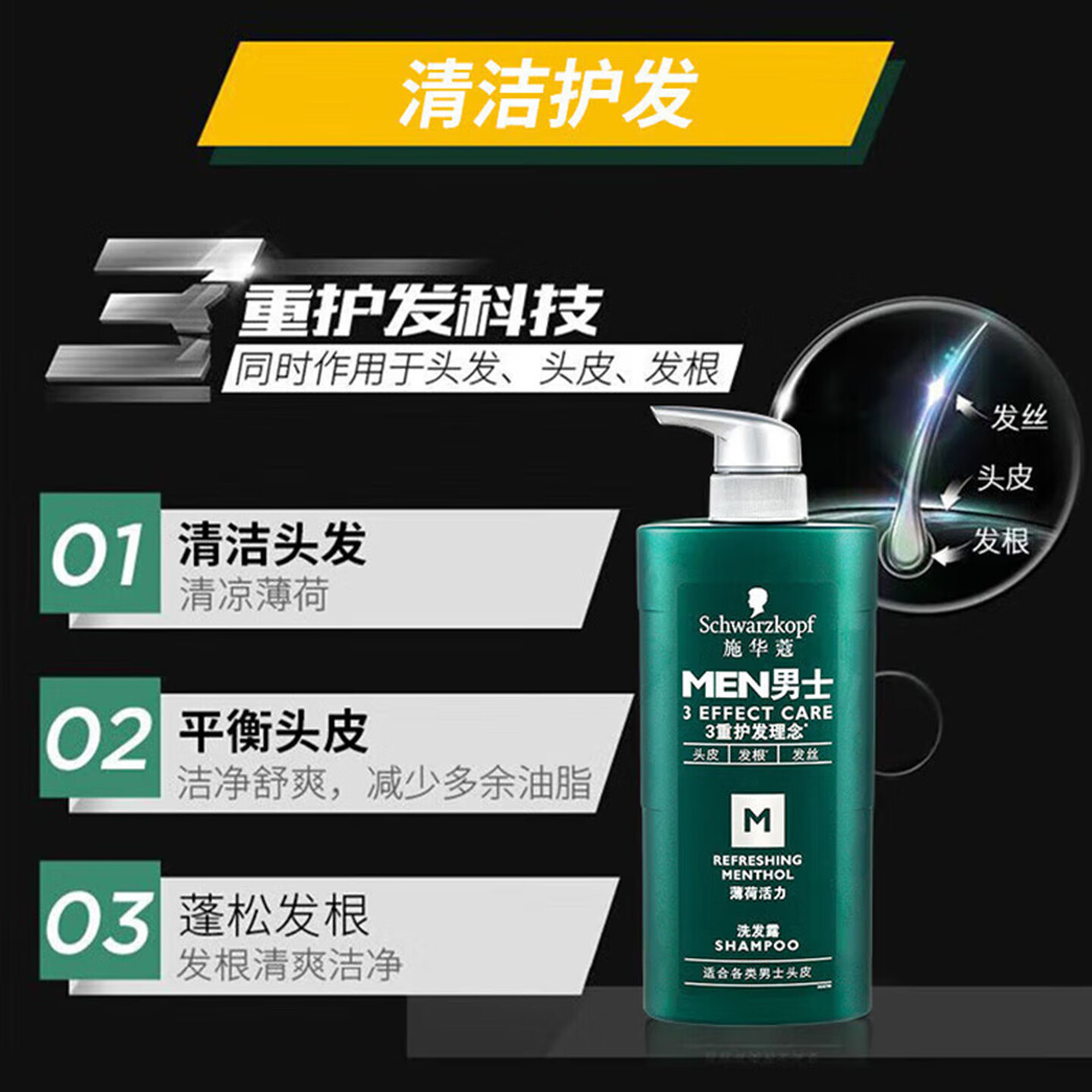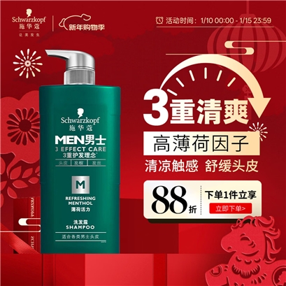 施华蔻(Schwarzkopf)男士薄荷活力洗发露洗发水450ml |