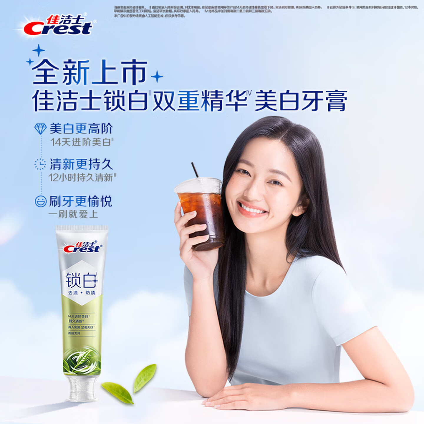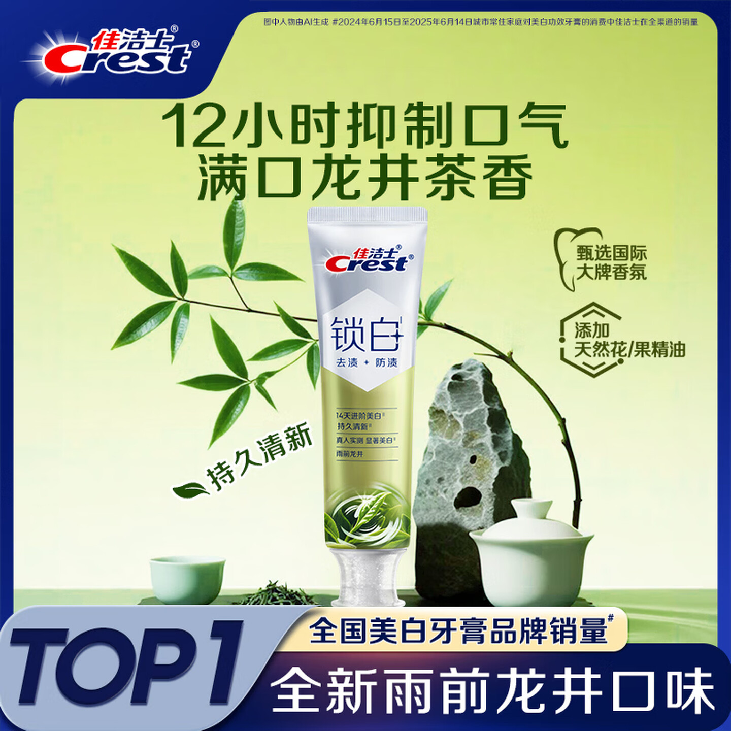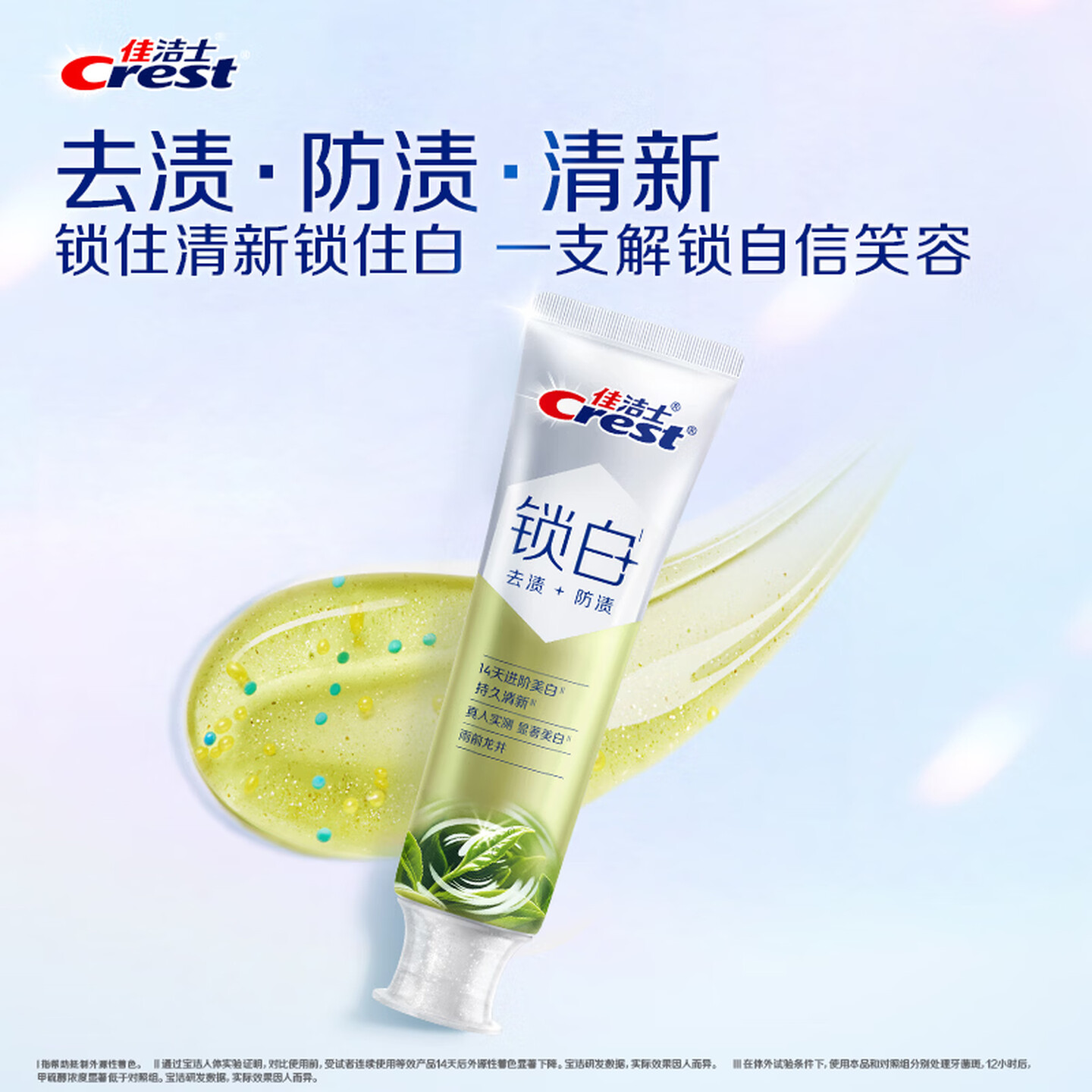 佳洁士(CREST)锁白双重精华雨前龙井味去渍含氟牙膏120g |