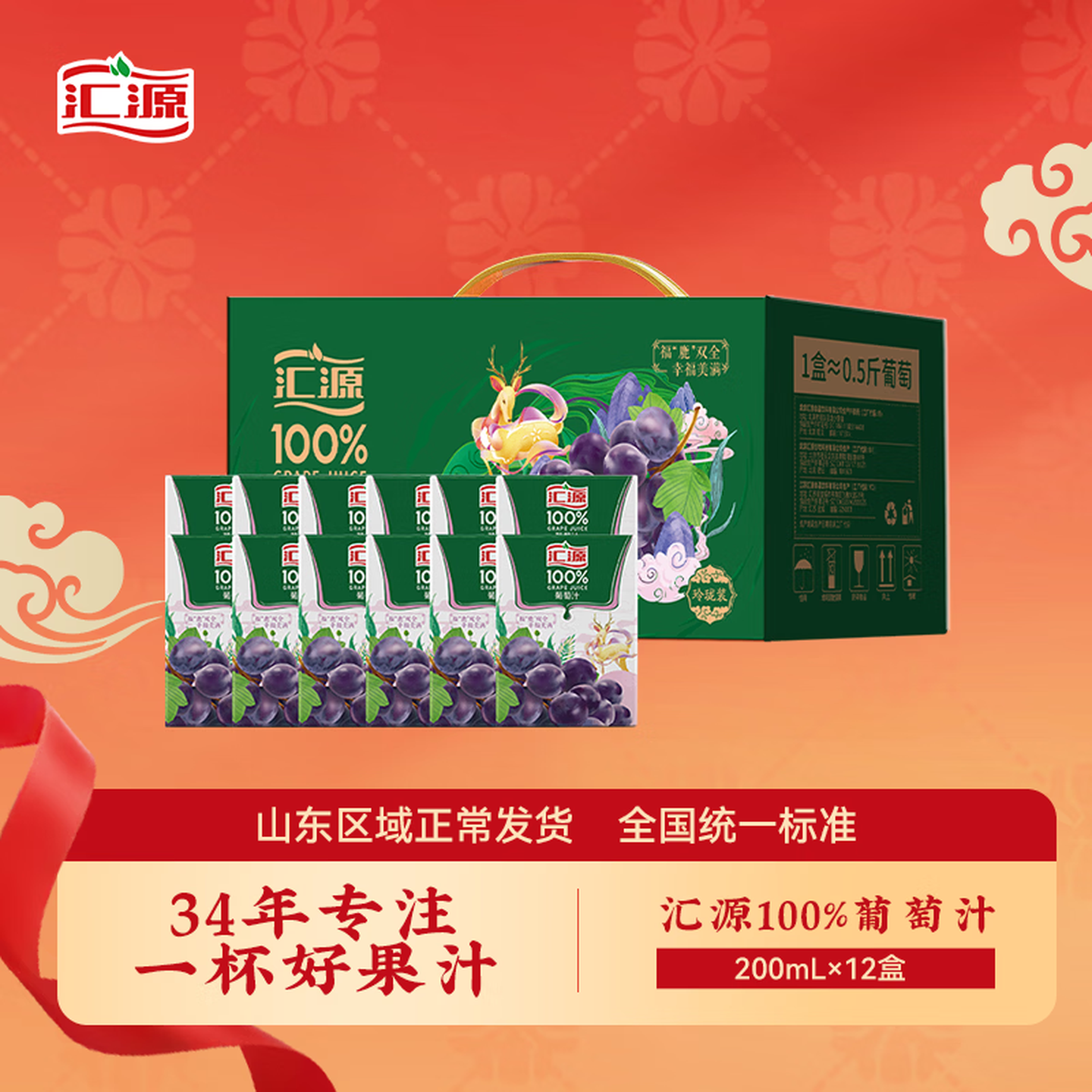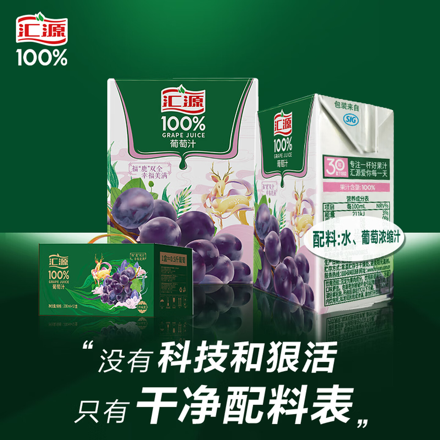 汇源100%葡萄汁纯果汁多种维生素饮料200ml |