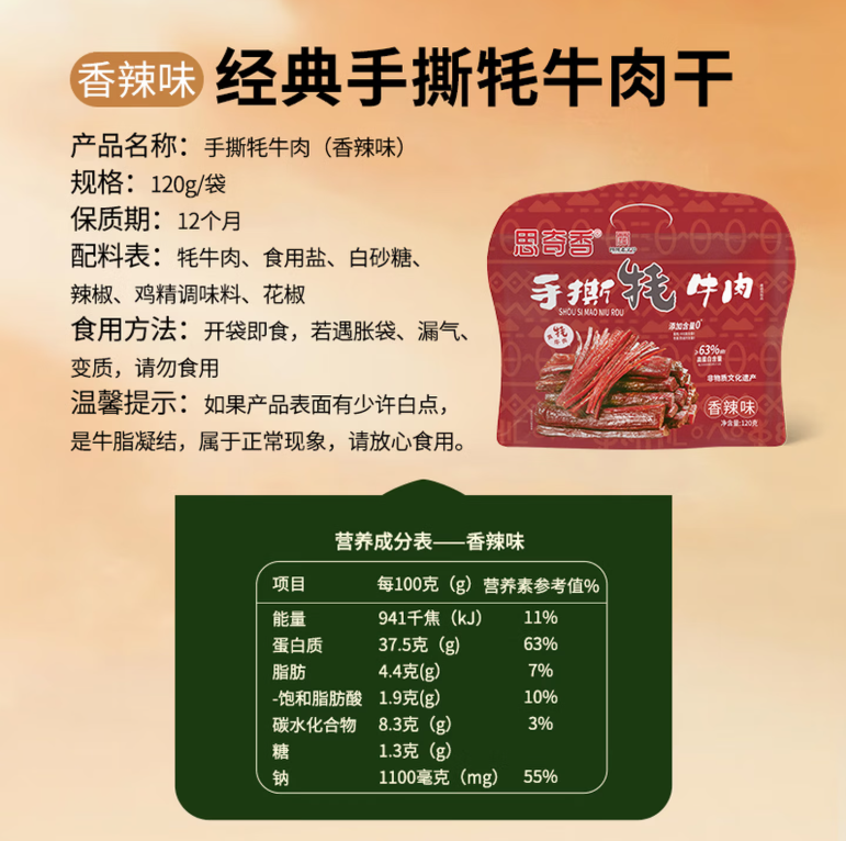 思奇香手撕牦牛肉120g 香辣味 |