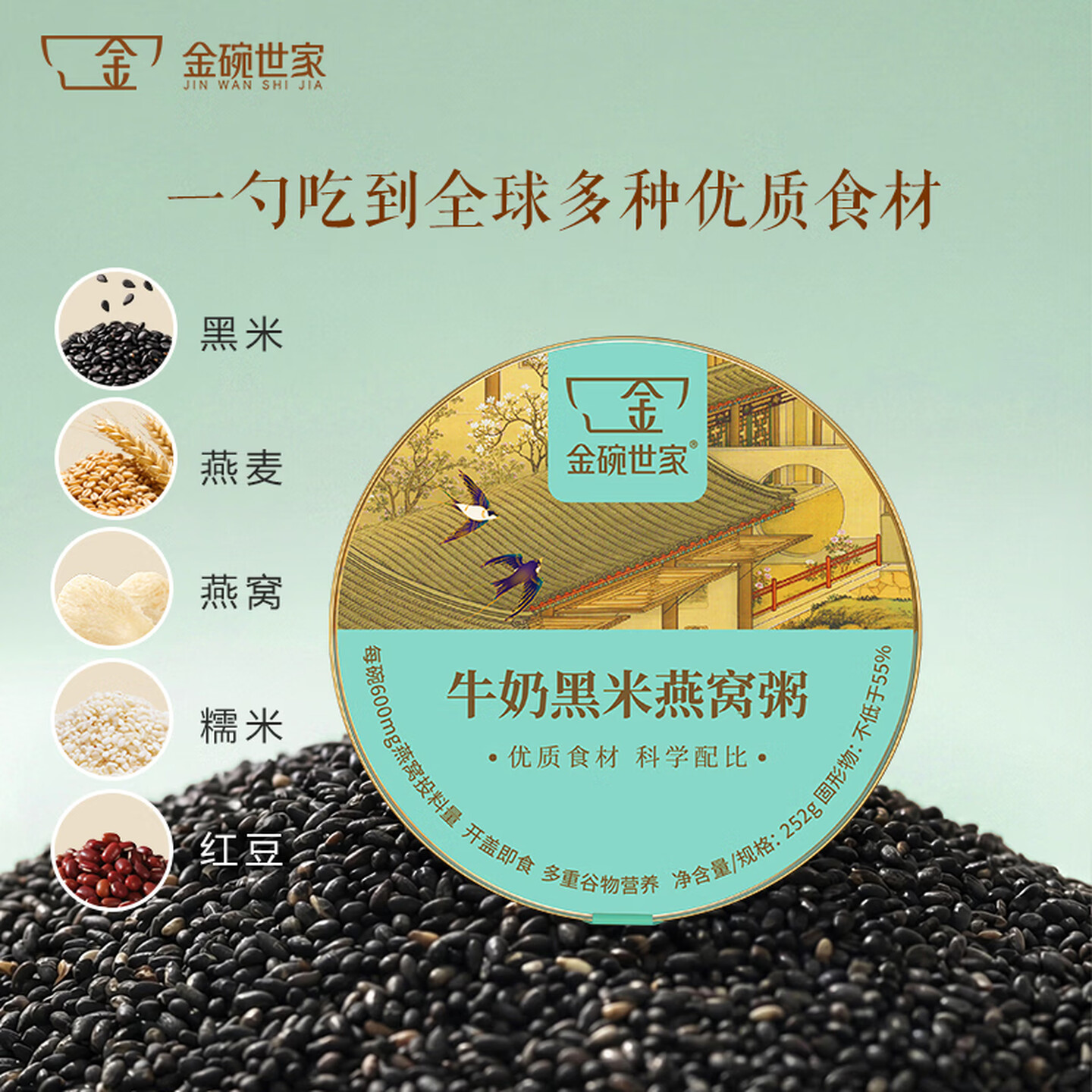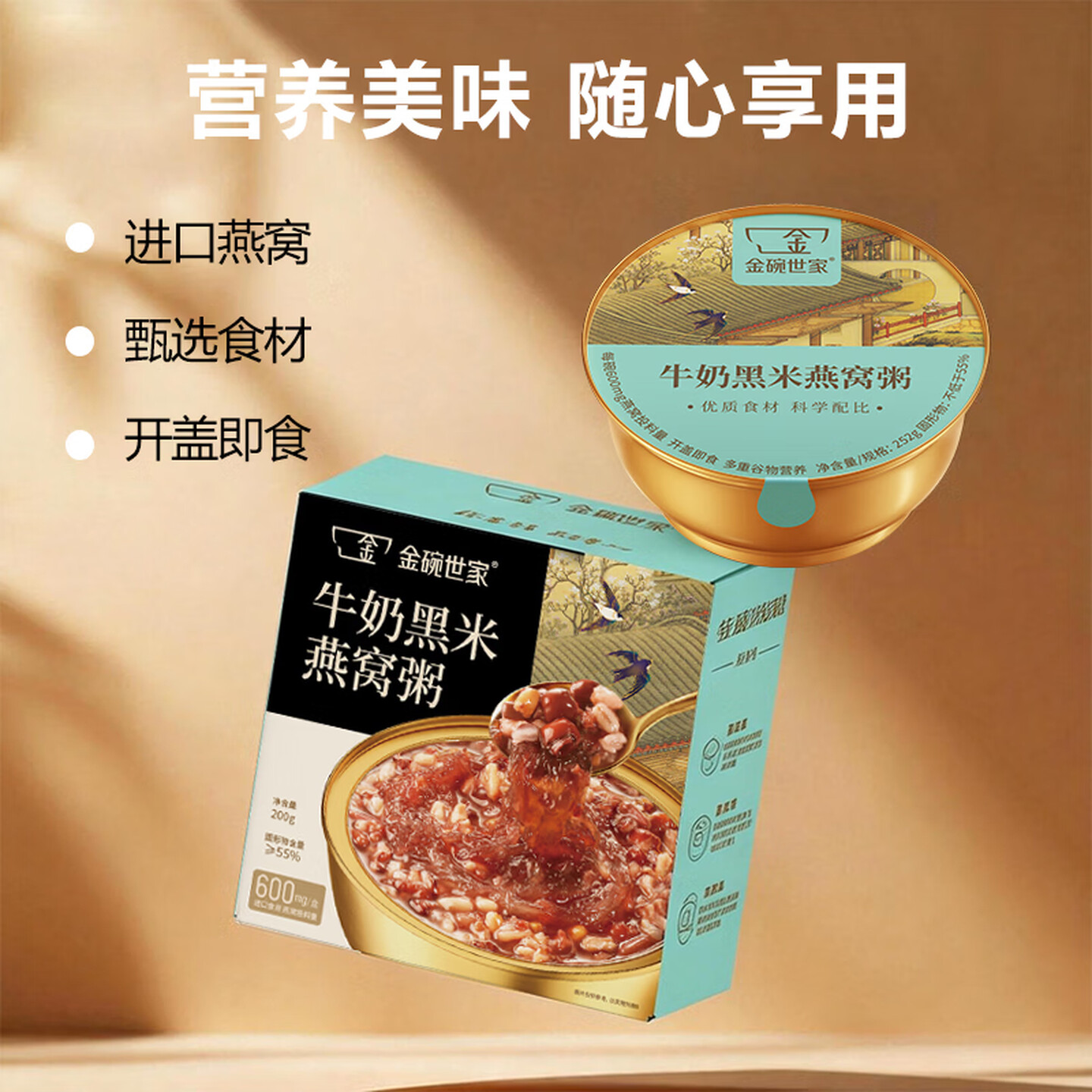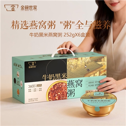 金碗世家牛奶黑米燕窝粥252g*6碗*1箱 即食粥 |