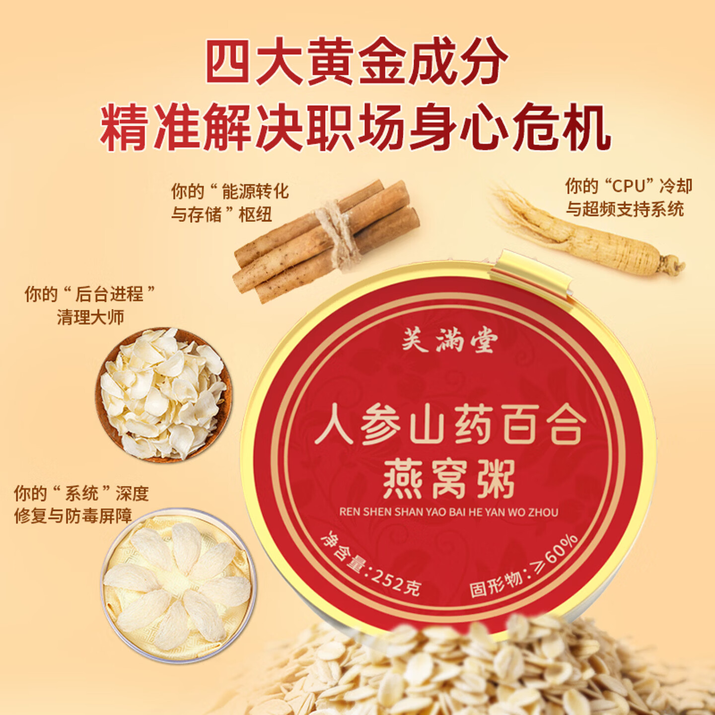 芙满堂人参山药百合燕窝粥礼盒 252g*1箱 即食粥 |