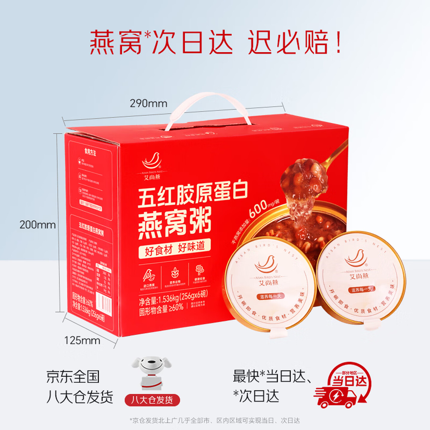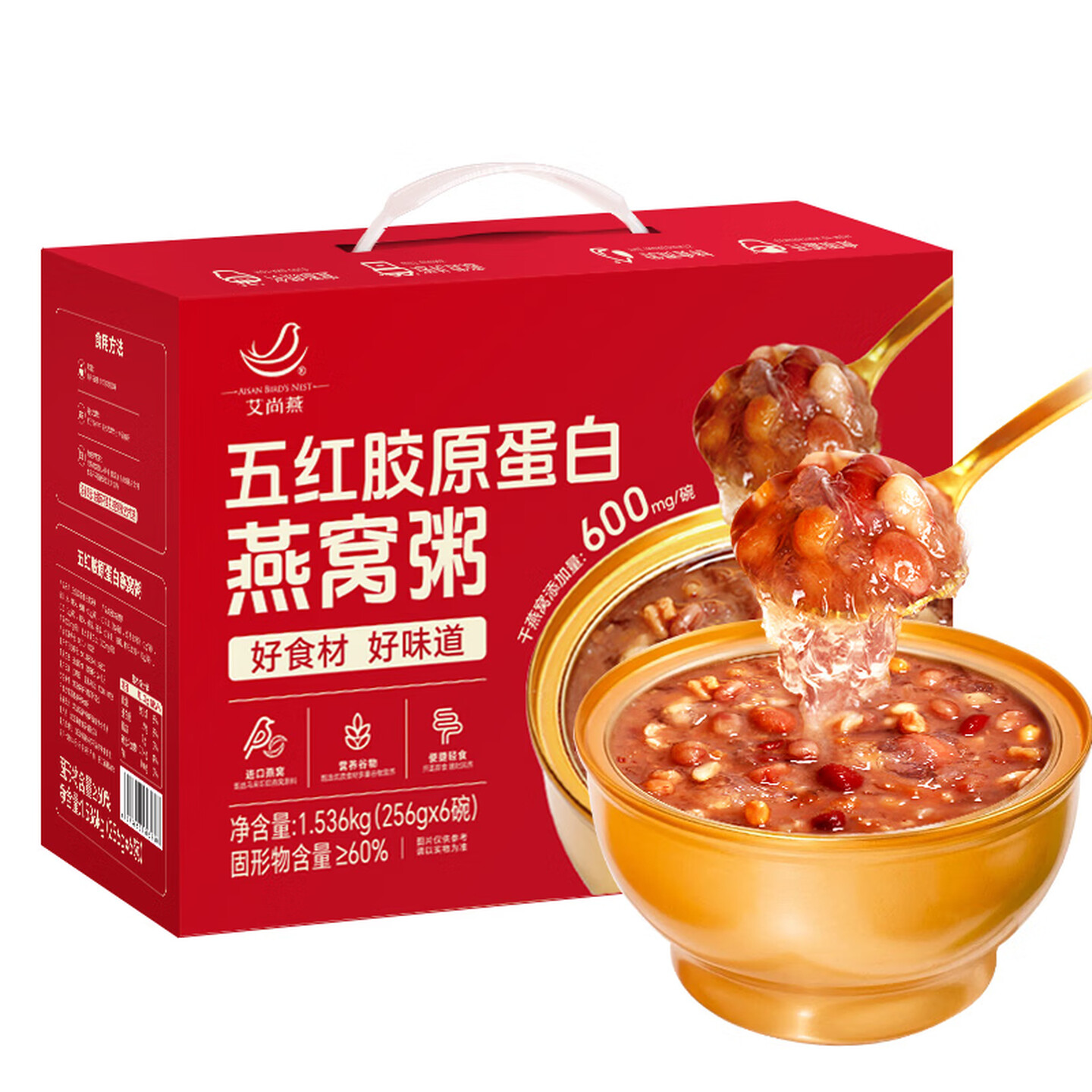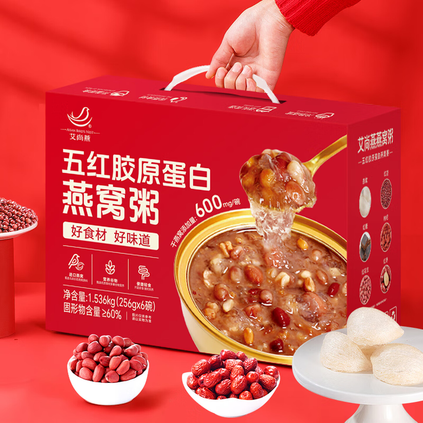 艾尚燕五红燕窝粥256g*6碗年货礼盒即食粥 |