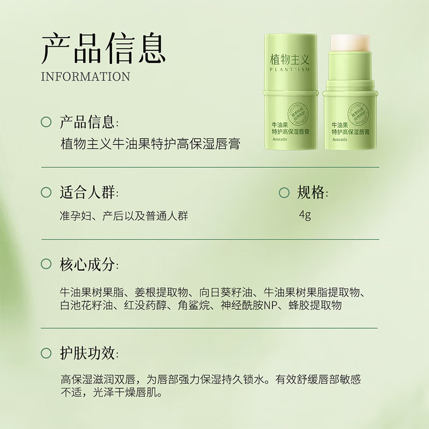 植物主义准孕妇润唇膏牛油果唇膏4g |
