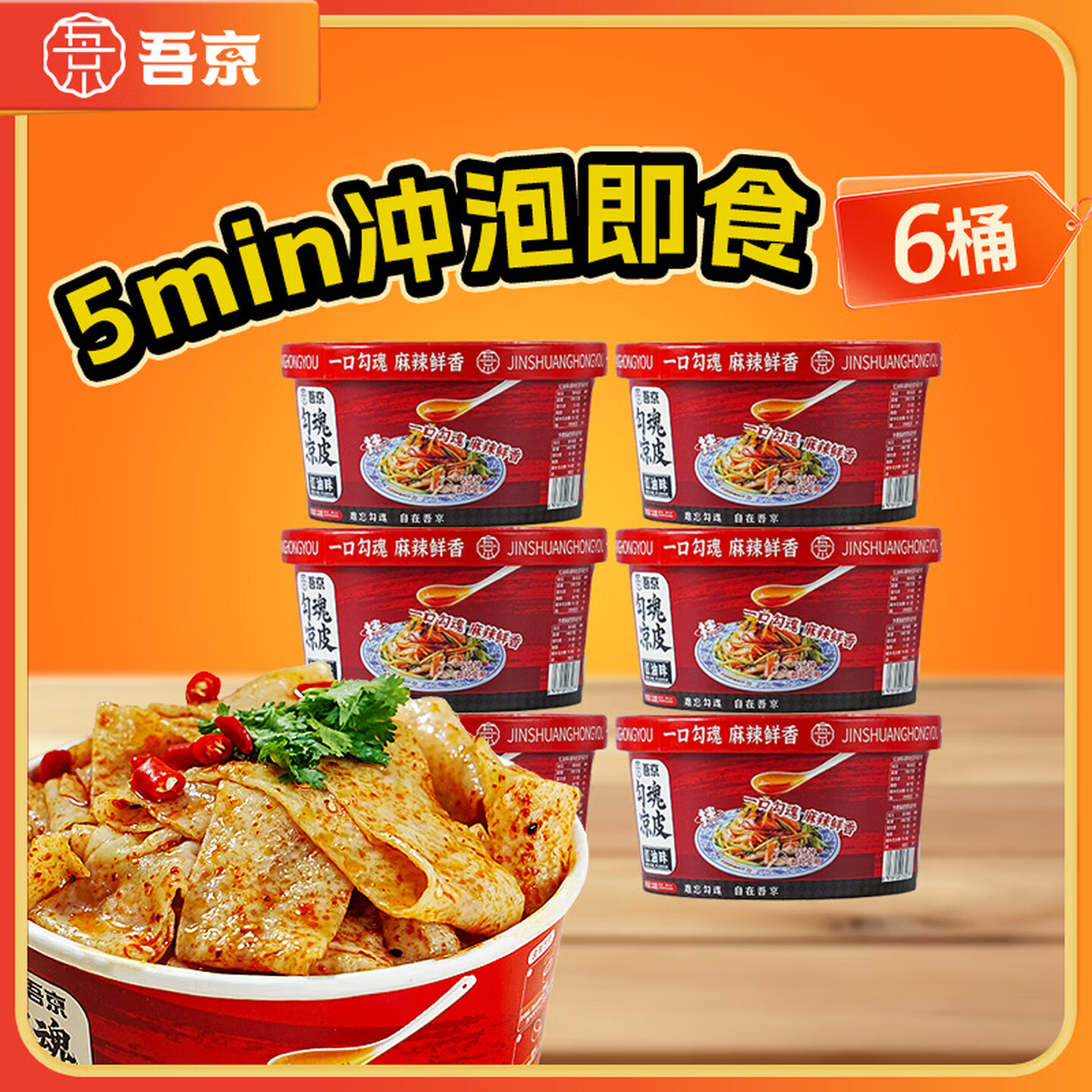 吾京勾魂面皮凉皮红油味118g*6桶 即食面 |