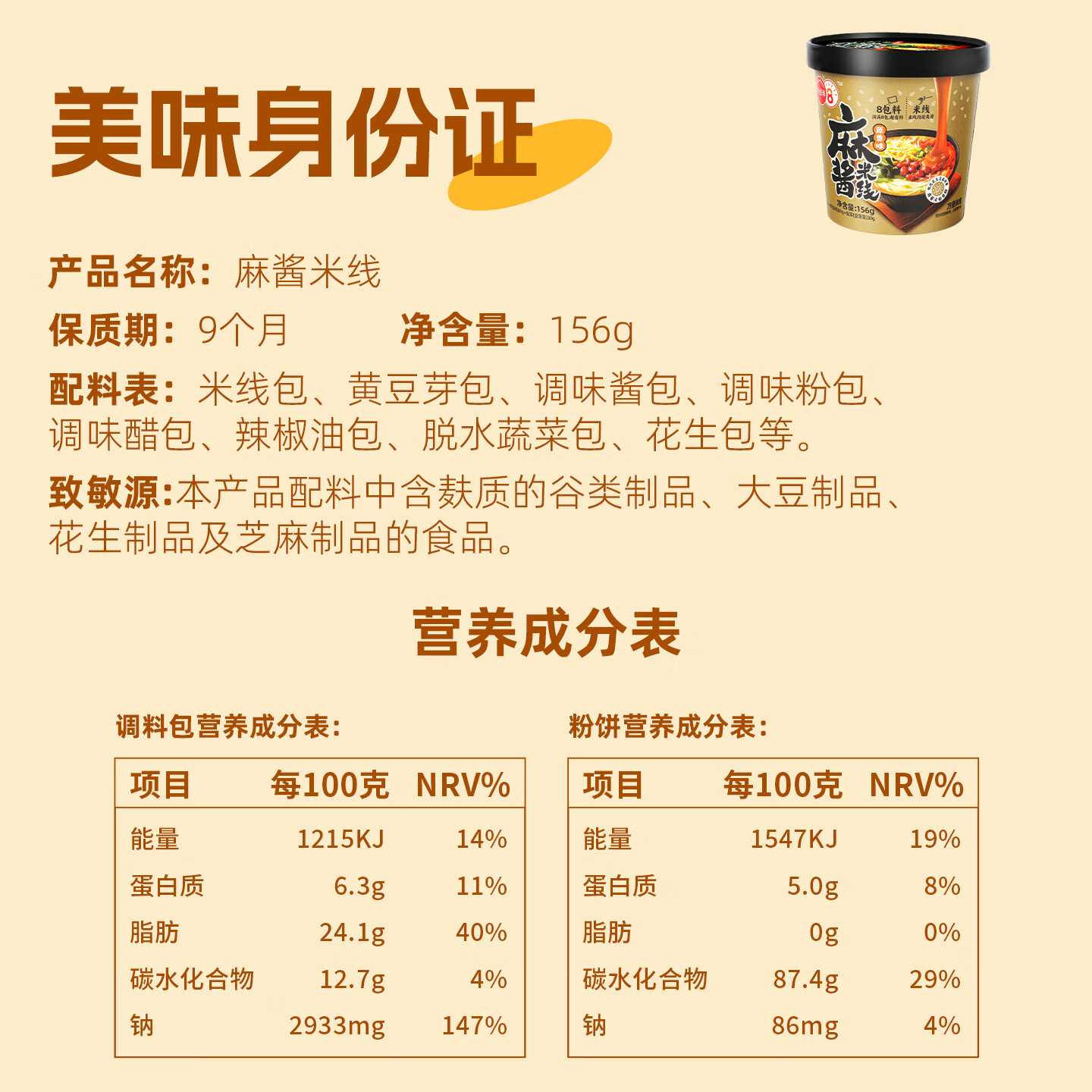 八点半麻酱米线156g*6桶 即食粉 |