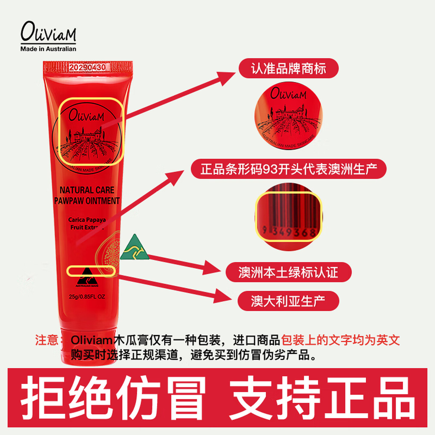 OLIVIAM澳洲原装 番木瓜膏 多功能润唇膏25g |