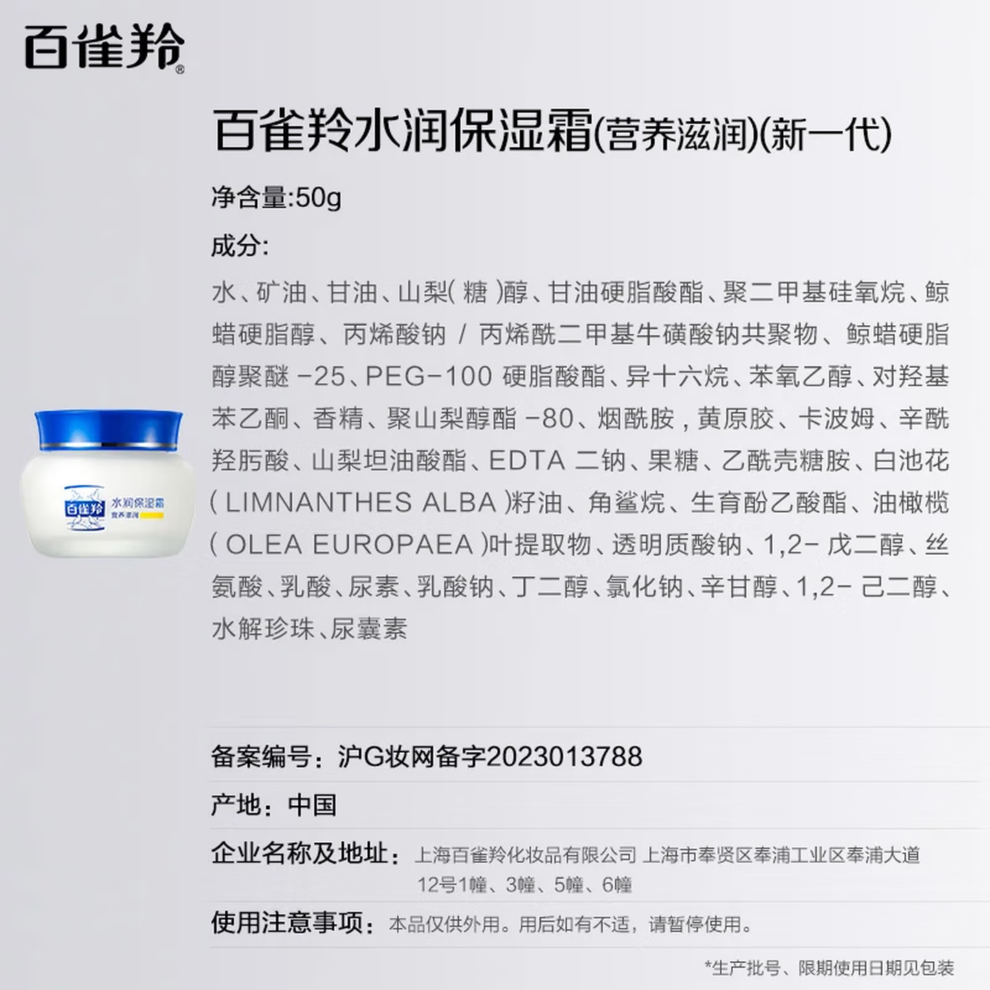 百雀羚(PECHOIN)水润保湿霜50g脸手霜 |