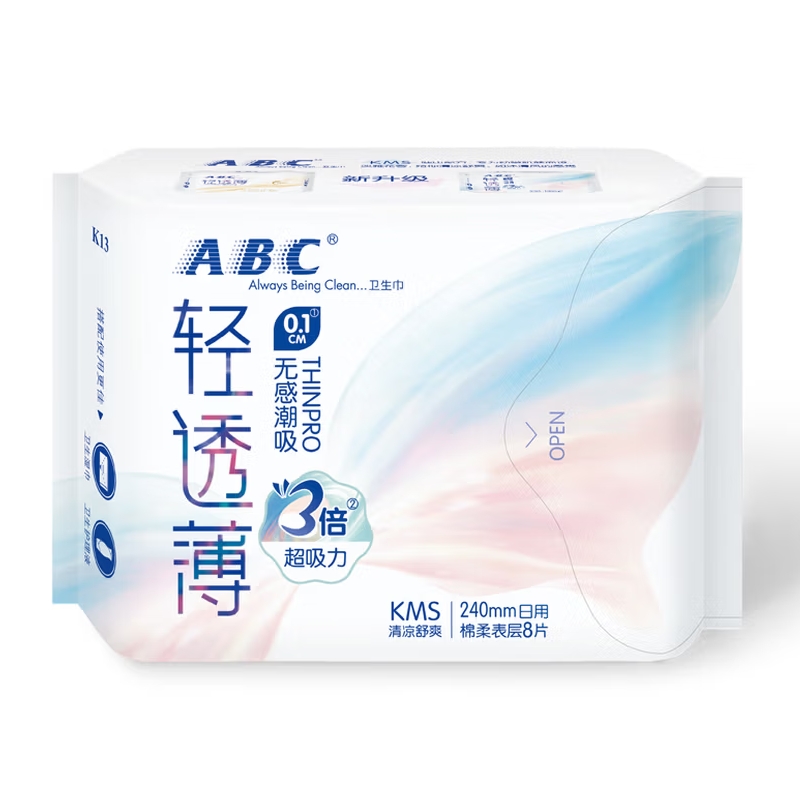 ABC超薄无感日用卫生巾240mm*8片 |