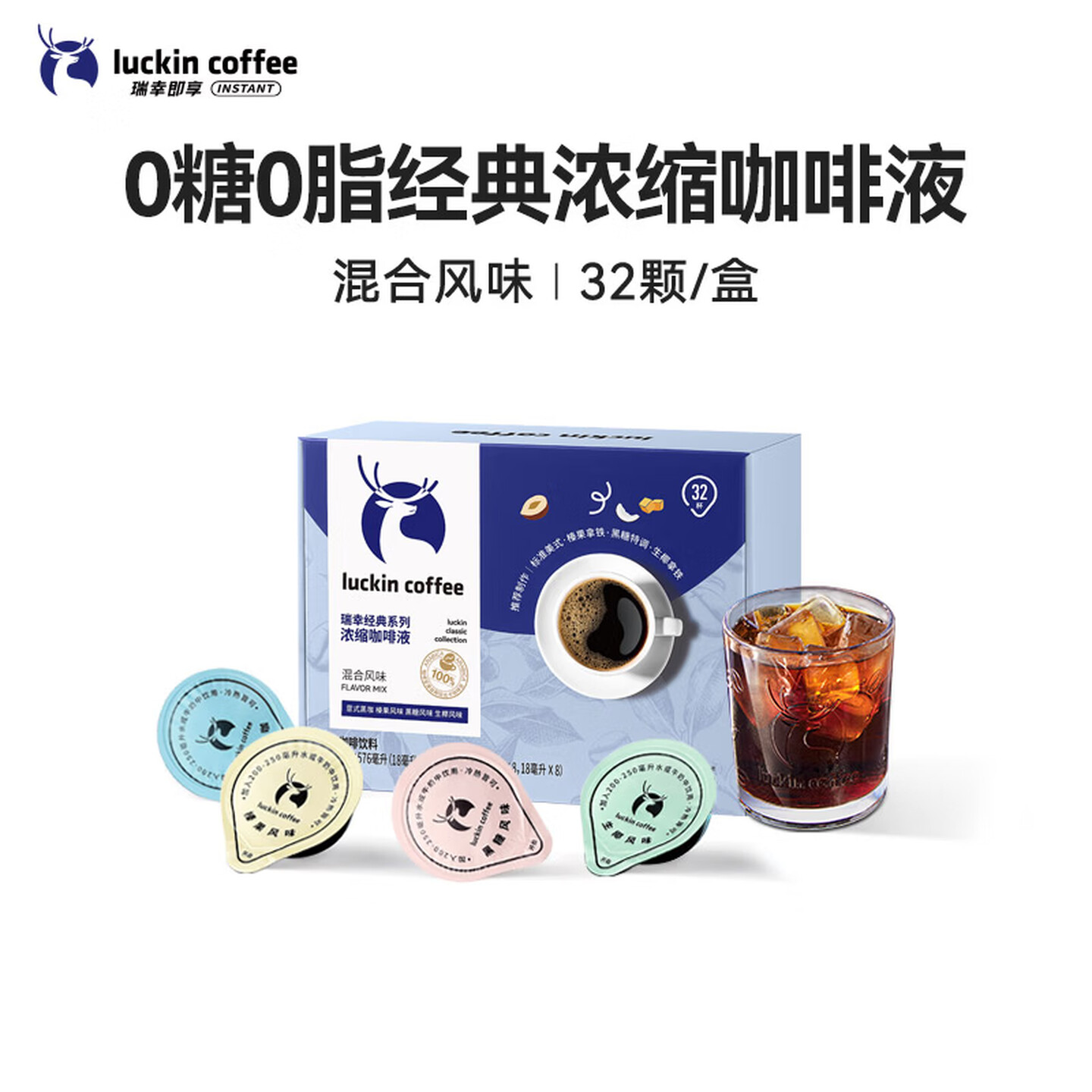 瑞幸咖啡0糖0脂经典浓缩咖啡液混合风味18ml*32颗 美式黑咖啡 |