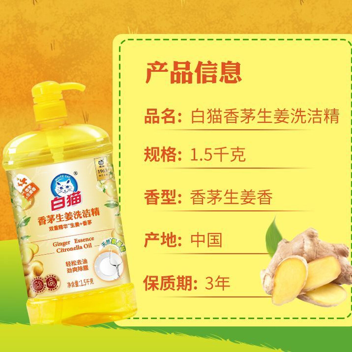 白猫洗洁精1.5kg生姜高效去油去味 |