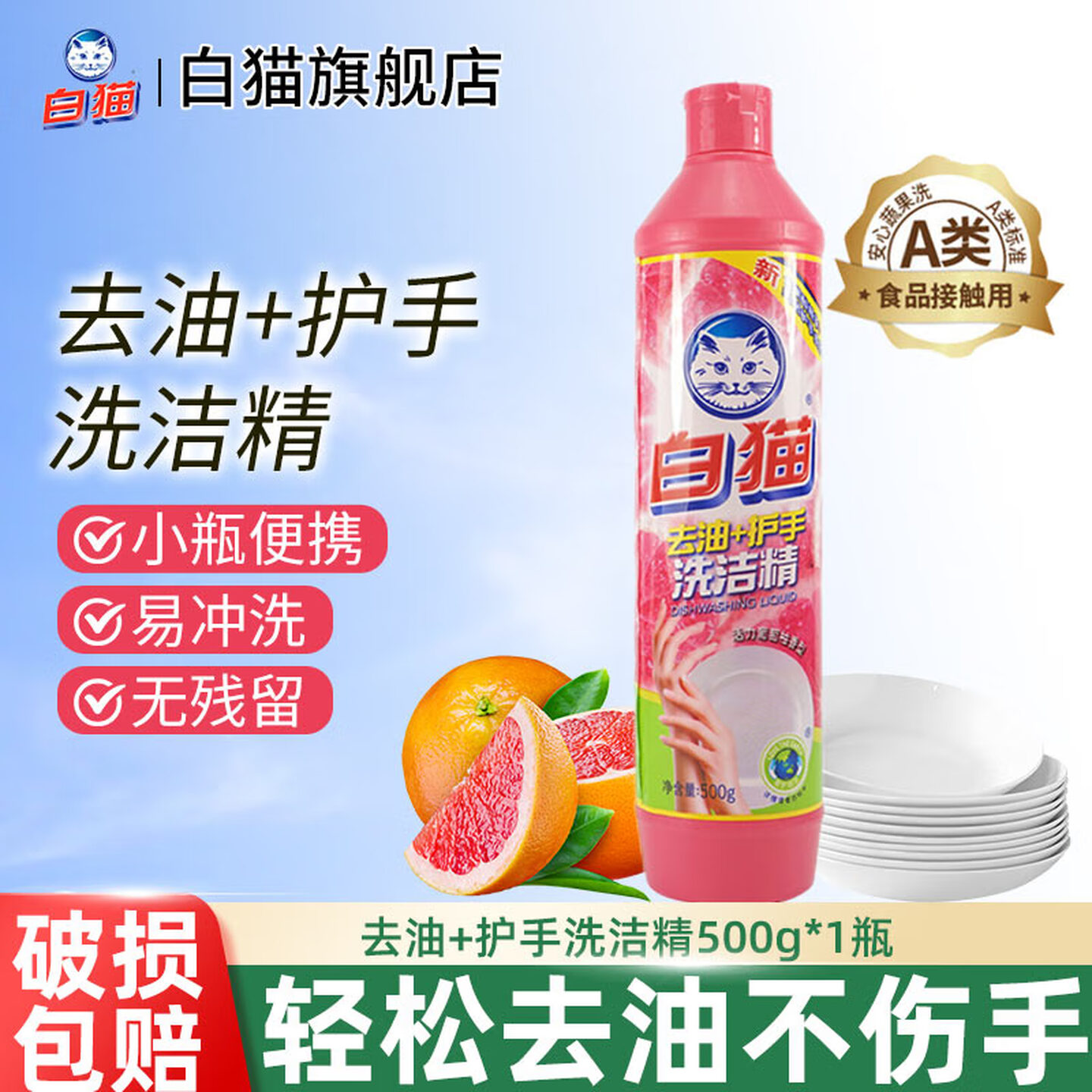 白猫去油护手洗洁精500g |