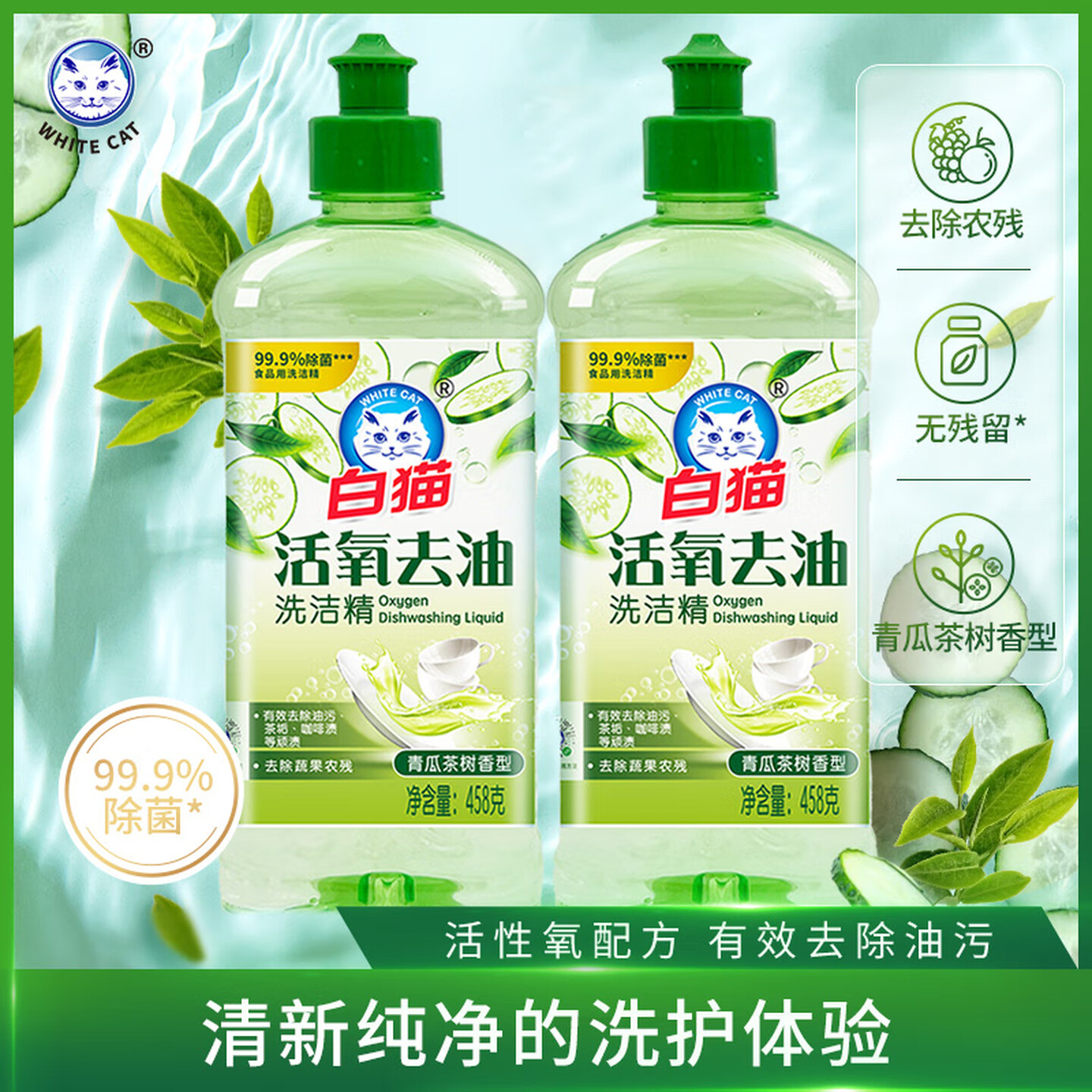 白猫活氧去油洗洁精茶树精油无残留 458g*2瓶 |