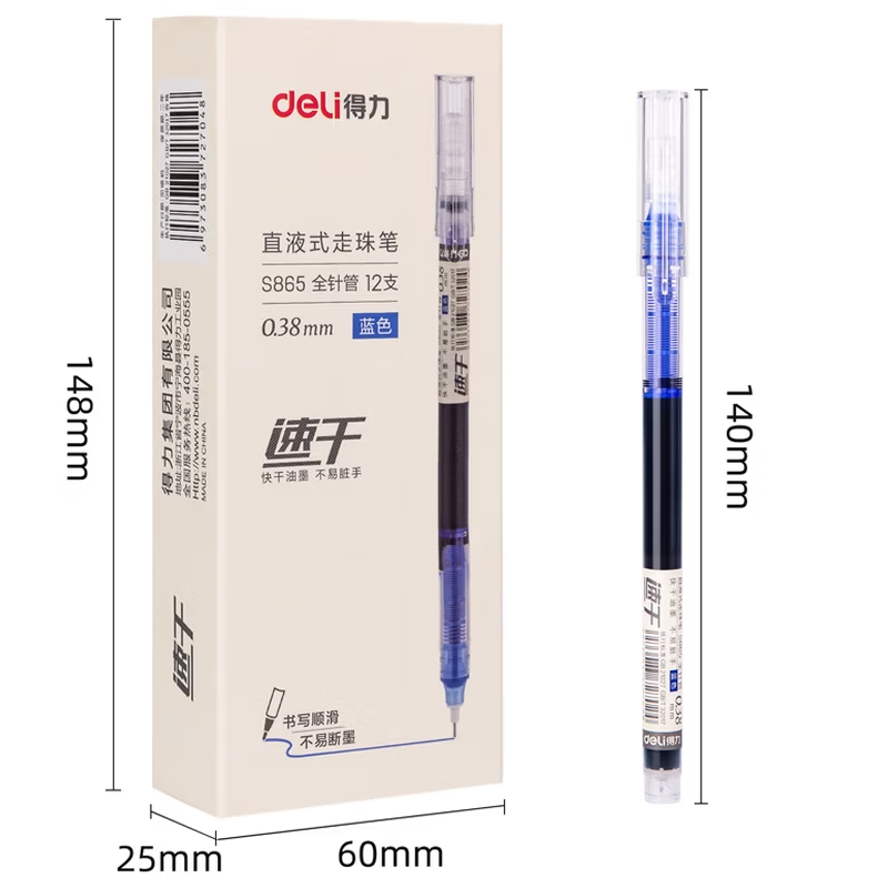 得力全针管中性笔0.38蓝12支 |