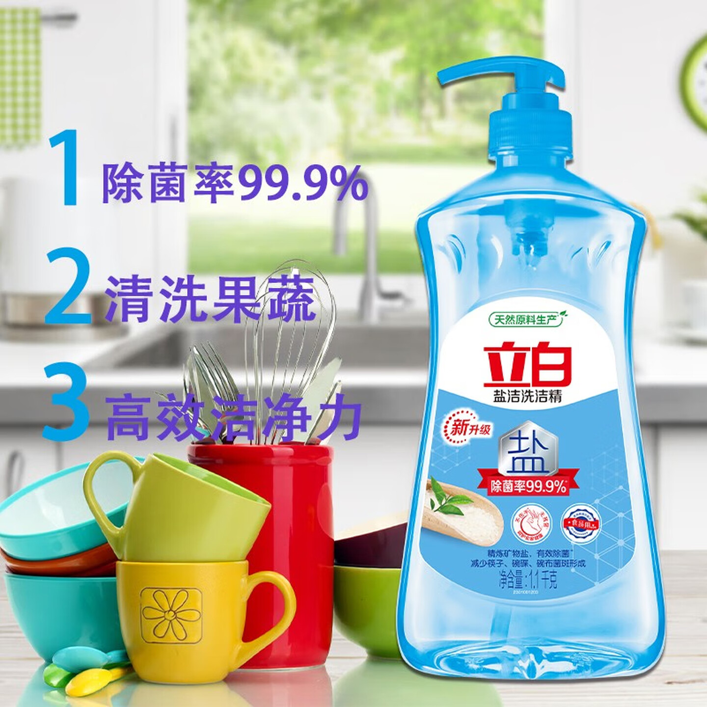 立白洗洁精盐洁除菌去油小蓝瓶洗洁精1.1kg |