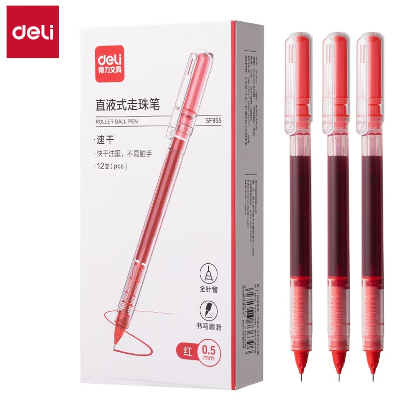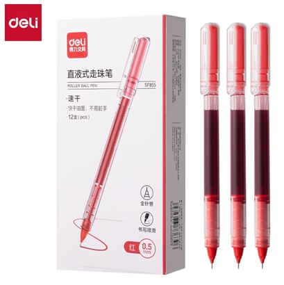 得力中性笔0.5mm红色12支/盒 |