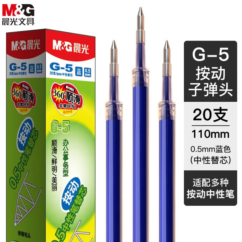 晨光中性笔0.5原装笔芯蓝色20支 |