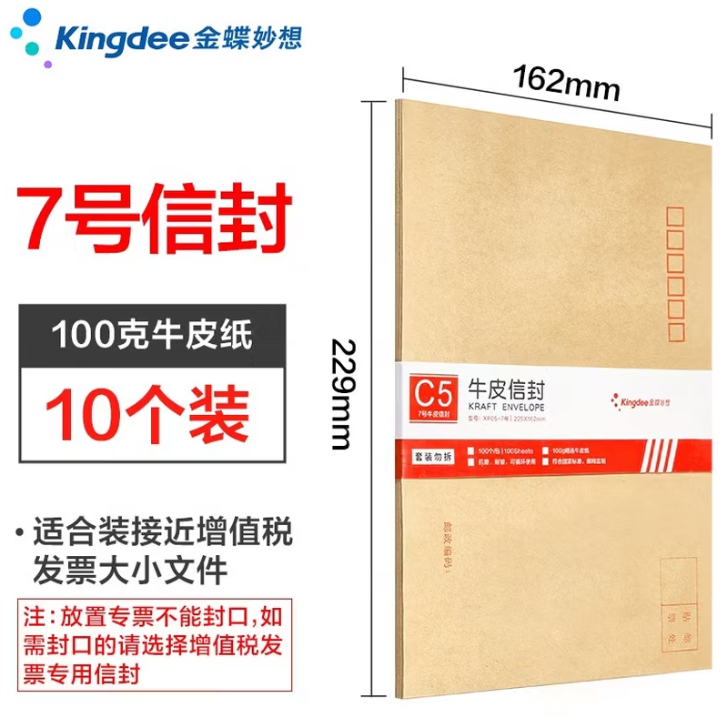 金蝶牛皮纸信封黄色7号10个 |