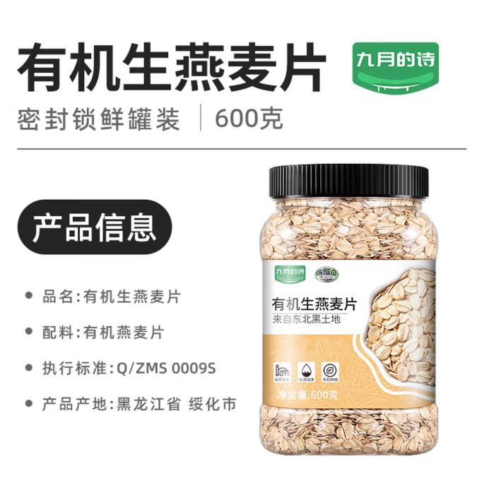 九月的诗有机生燕麦片1.2斤*1罐 |